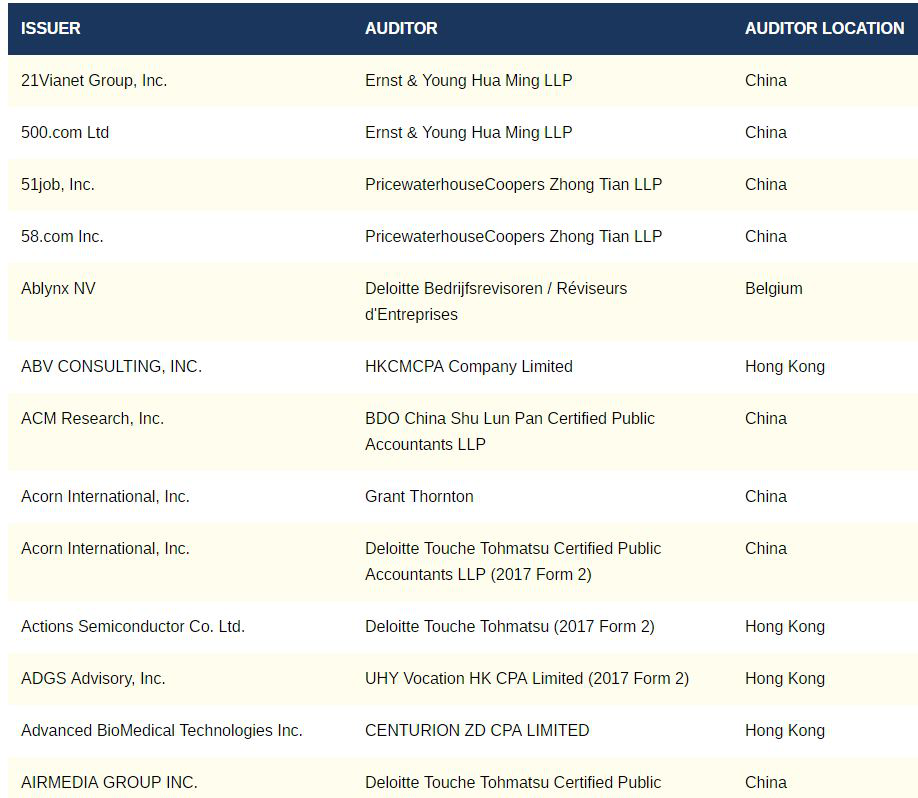 PCAOB罗列的公司名单 资料来源:PCAOB网站