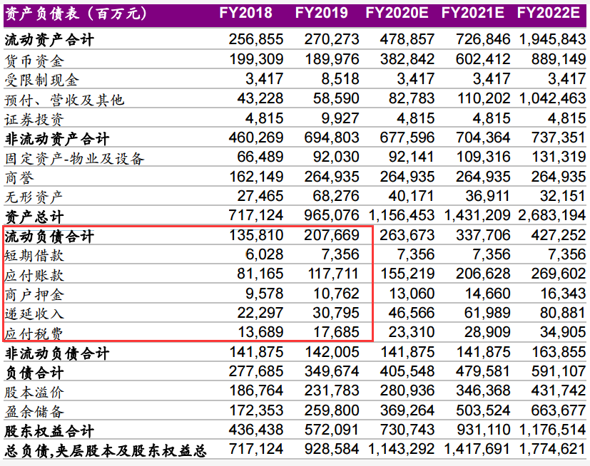再者,从阿里发布的财报数据来看,其2019年Q1的流动负债合计2076.69亿元,但真正意义上的流动负债仅为250亿(短期借款和应付税费),刨去这两项,其负债压力很小。