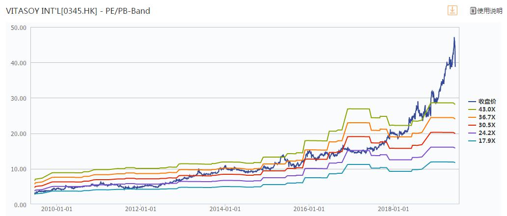 尽管营收的增速下滑,但毕竟全年还有双位数的增长,为何一周就跌超15%。这也就是戴维斯曾经提过的道理,当维他奶有10%-20%的业绩增速之时,市场给与20倍左右pe属于正常范围。但随着股票热度的增加,叠加经济增速下滑导致对于稳定消费股的追捧,维他奶的估值慢慢变得高估。到维他奶得到超60pe的时候,实际对其高估程度陷入了“疯狂”。