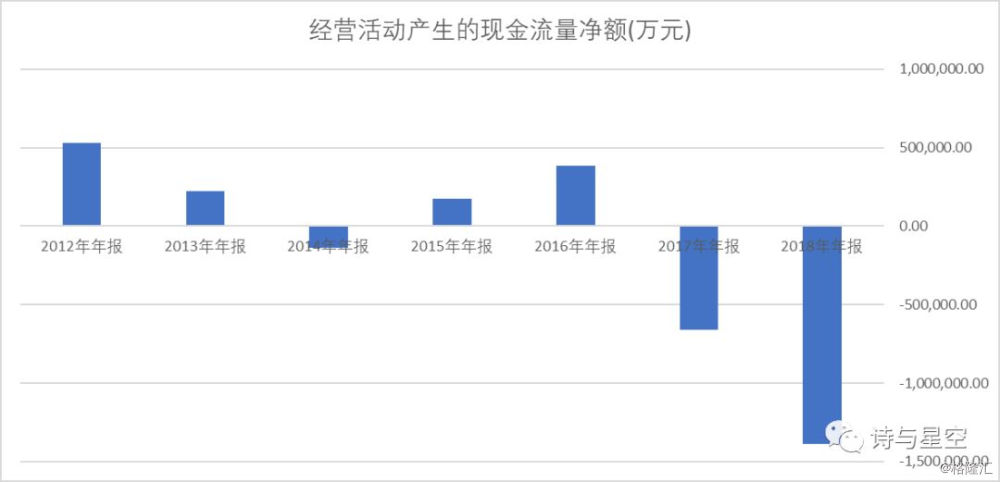 2012年以来,公司经营性现金流量净额合计为-146亿,从经营角度看,公司现金流入不敷出。