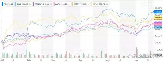 而进入2019年,尽管对Facebook在用户隐私方面的质疑和监管,甚至反垄断风险仍在,但是Facebook从外部环境到业绩状况都已经趋稳,更值得欣慰的是,Facebook并没有因为过去一年被折磨蹂躏而乱了阵脚,产品路线依然坚定而清晰。所以,今年以来,Facebook涨幅大幅跑赢纳斯达克100指数,更优于其他几只大体量的科技蓝筹股。