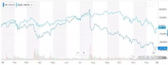 在整个2018年,Facebook大幅跑输纳斯达克100指数,股价从218美元的高点一度跌落到123美元的最低点,跌幅高达43.5%,这是一个奔着腰斩去的架势。而对于Facebook的2018年,有两大节点,一个就是数据门爆发时的暴跌,当时我的判断是这是一个大麻烦,但是鉴于当时Facebook还算不错的应对,所以此后Facebook不但收复失地,而且随着大盘连创新高。接着就是Facebook的财报和预期出现明显下滑,数据门的财务影响开始显现,同时Facebook内部也有重要高管离开体现出了一定的“治理危机”,加之市场进入抛售阶段,科技股在其中又非常突出,Facebook进入了最糟糕的时候。