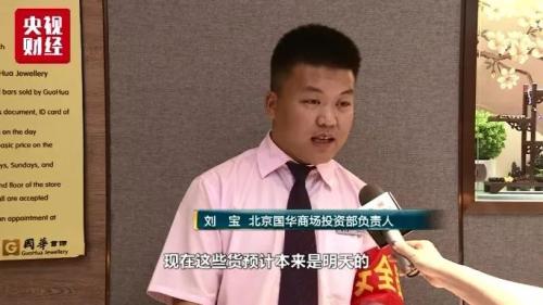 北京国华商场投资部负责人 刘宝:刚卖完一批金条,现在这些货本来预计是明天的,现在都提前已经铺上了,目前柜台的铺货量是没有了。