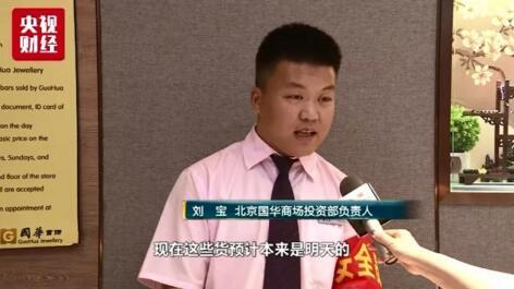 北京国华商场投资部负责人 刘宝:刚卖完一批金条,现在这些货本来预计是明天的,现在都提前已经铺上了,目前柜台的铺货量是没有了。