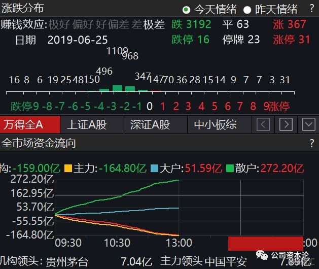 而在资金流入方面,北向资金半日流出22亿,机构流出159亿,主力流出165亿,散户流入272亿