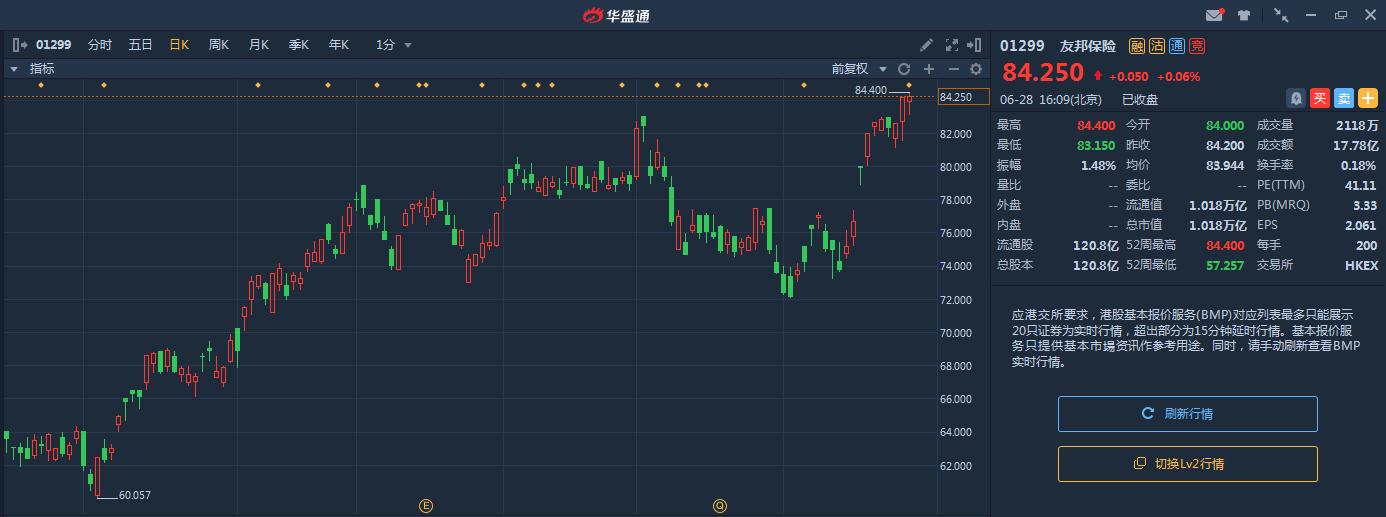 集团为亚洲区内超过18个国家提供服务,大部分保费皆以当地货币收取。为避免受到当地资产及负债造成的外汇风险所影响,全皆以美元呈报。虽然环球金融市场近日反覆波动,个别更出现地缘政治局势不明朗等问题。唯亚洲地区内经济增长仍见稳定,定可以为保险业务之长远前景提供正面的支持。可于现价84.25元附近买入,中长线可见118元,跌穿73元止蚀。