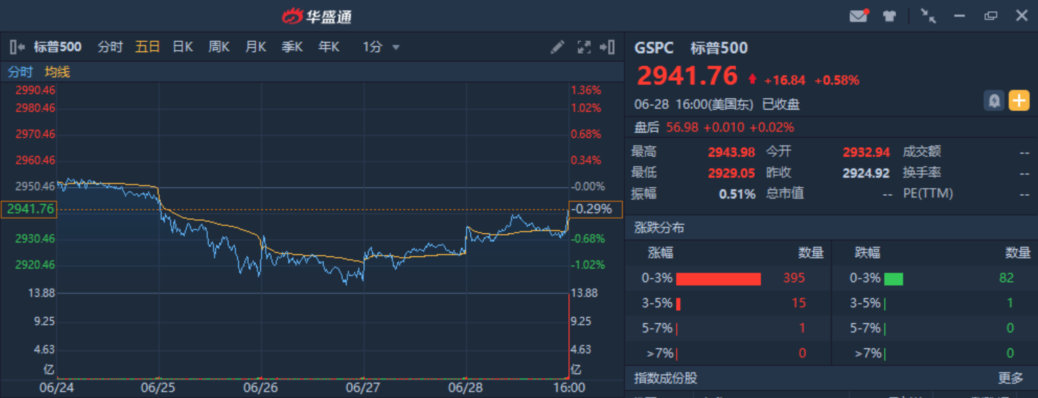 上周,三大股指先跌后涨,周五以小幅收涨结束了今年上半年最后一个交易日。整个6月,三大股指涨幅均超过6%;相比今年年初,标准普尔500种股票指数涨幅约为17%,纳斯达克综合指数涨幅超过20%。