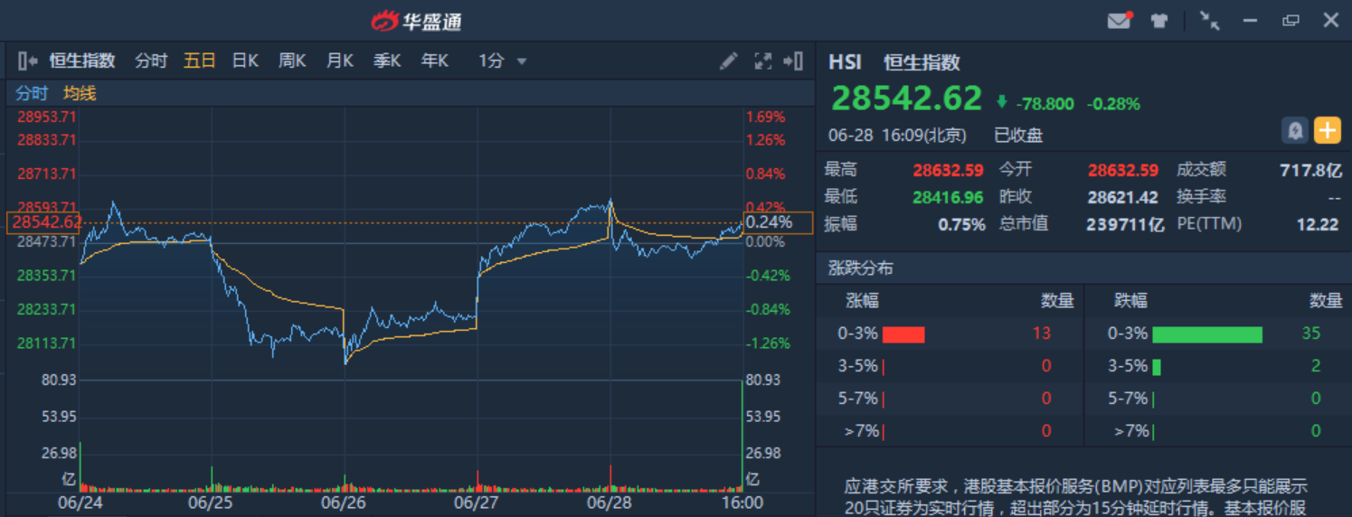 上周,恒生指数下挫后回升,恒指上半年累计上涨10.43%,最高点30260.12点,最低点24896.87点,6月累计反弹6.1%。