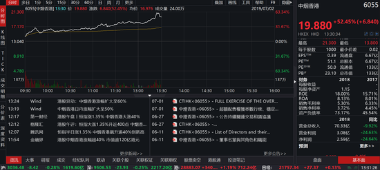 2019年6月12日,中烟香港首日上市,股价盘中便一度飙升20%,最终收涨9.63%。如果说上市首日是个开胃菜,那上市第二日的涨幅至少可以算是正餐了。6月13日,中烟香港迎来暴涨,涨幅高达40%。当新股破发成为常态的情况下,大家都以为,你要跌了吧,谁只中烟香港就随意象征性的盘整了下,再度开启飙涨模式,6月26日涨逾10%,6月27日涨6%,6月28日涨近20%,7月2日再度飙升逾60%。