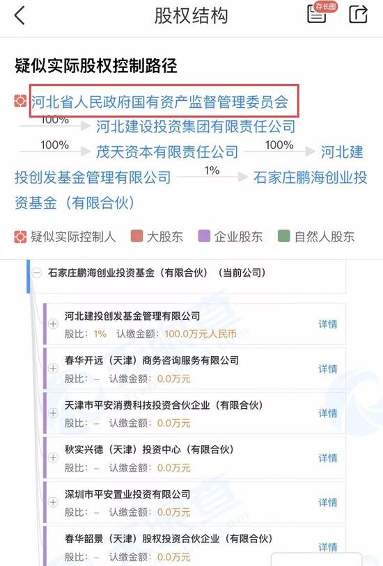 天眼查信息显示,鹏海基金的实控人是河北省国资委。君乾管理的大股东是苏雷,而苏雷参股的另一家公司——石家庄中融通投资咨询有限公司,又和魏立华有着千丝万缕的关系。