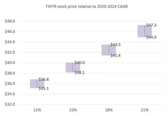 从分析中可以清楚地看出,目前 Twitter 股价的预测假设相对温和(如果不是悲观的话)。