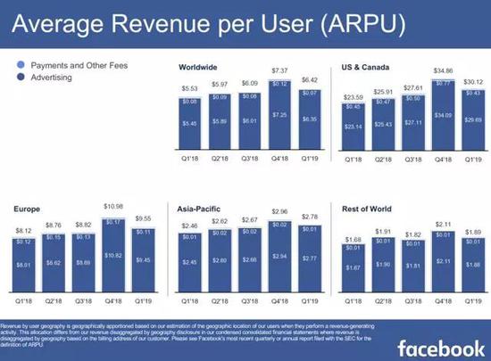 另一个重要点是每用户平均收入(ARPU)度量的动态性。在第一季度,Twitter 创造了7.86亿美元的收入,每月有3.3亿活跃用户(MAU) ,其 ARPU 约为2.4美元。 相比之下,Facebook 在同一时期的 ARPU 值为6.42美元,几乎是 Twitter 的三倍。