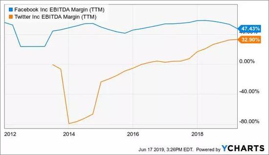 然而,这种假设似乎过于悲观。Twitter多年来显著改善了与利润率相关的指标,显示出在短时间内实现业务盈利的能力。此外,尽管该公司不太可能在利润率方面取得Facebook那样的成功,但显然仍有很大的增长空间,因为Facebook的EBITDA利润率为47%,比Twitter高出15个百分点。