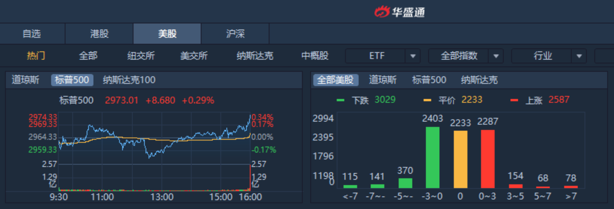 周二,美股收盘小幅上涨,标普500再次创下收盘历史新高。美国拟再对欧盟产品加征关税,一度挫伤了市场的乐观情绪。截至收盘,道指涨0.26%,报26786.68点;标普500涨0.29%,报2973.01点;纳指涨0.22%,报8109.09点。