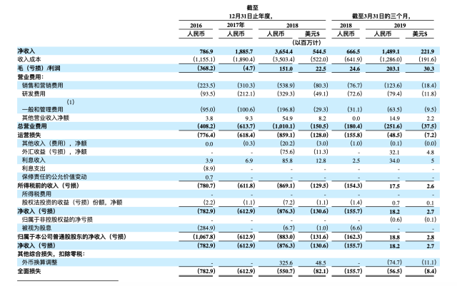 F-1/A文件显示,2016年、2017年、2018年和2019年一季度,斗鱼的年度营业收入分别为7.87亿元、18.86亿元、36.54亿元、14.89亿元,净利润分别为-7.83亿元、-6.13亿元、-8.76亿元和1820万元。