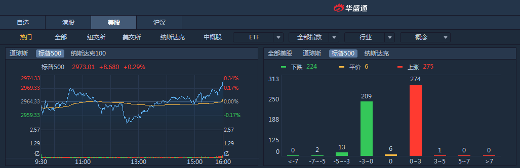 周二,美股收盘小幅上涨,标普500再次创下收盘历史新高。美国拟再对欧盟产品加征关税,一度挫伤了市场的乐观情绪。截至收盘,道指涨0.26%,报26786.68点;标普500涨0.29%,报2973.01点;纳指涨0.22%,报8109.09点。