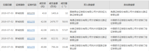 新浪财经讯 7月3日消息,7月3日晚间,据上交所披露信息显示,新城控股盘后出现一笔大宗交易,成交量32万股,成交价格43.8元,成交金额1401.6万元。卖出营业部为海通证券宁波解放北路证券营业部。