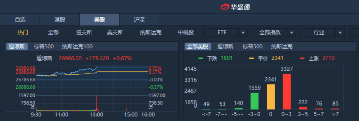 周三,降息预期升温,美股三大股指均创历史新高。道指涨0.67%,报26966.00点;标普500涨0.77%,报2995.82点;纳指涨0.75%,报8170.23点。