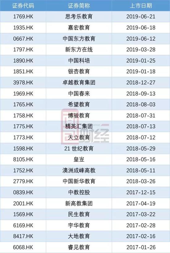 翻查资料发现,港股市场自2017年就迎来了教育类企业的密集上市期。在这中间,同样提供民办高等教育服务的企业包括新高教集团、中教控股以及中国新华教育等。