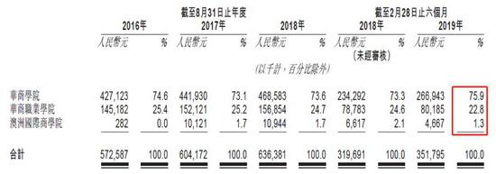 公司旗下有三所学校,包括广东财经大学华商学院、华商职业学院以及澳洲国际商学院。截至2019年2月28日止六个月的财务数据显示,公司实现营收约3.52亿、归母净利润0.93亿。
