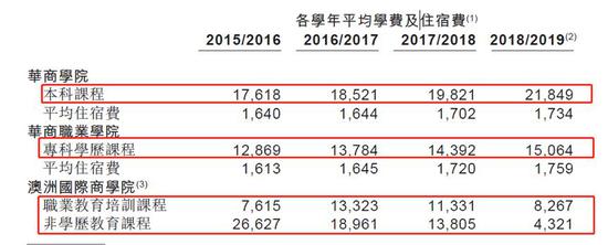 从具体收费来看,提供本科课程的华商学院费用最高,2018/2019学年的平均学费为21,849元,且呈现逐年上升的趋势。从2015/2016学年开始计算,复合增速达7.44%,明显跑赢通胀水平。提供专科学历课程的华商职业学院的情况与之类似,学费稳步上涨。