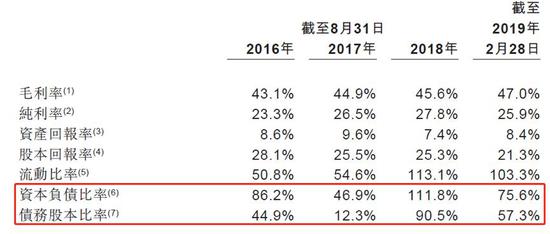 债务股本比率(年末/期末的总银行借款减去现金及现金等价物除以年末/期末的总股本)则从2017年的12.3%上升到了2018年的90.5%。