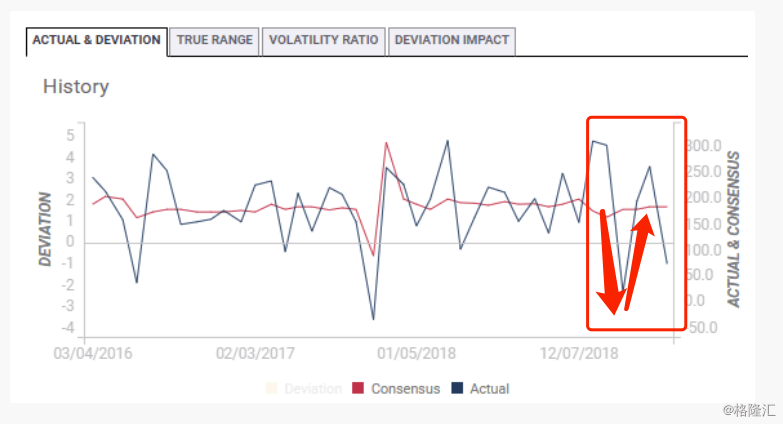 从下表中可以看出,尽管2月份的非农数据让市场大失所望,但3月美国的非农就业数据便强势反弹,这种“V型”反转,或许能为今晚即将公布的数据提供一些线索。