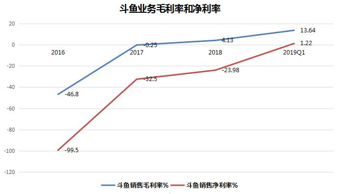 看完了斗鱼、虎牙的营收增长,先别急着心潮澎湃,还需看看游戏直播的赚钱效应如何。2019年一季度斗鱼自2014年更名以来,首次实现净利润1820万元。回顾财报上前几年的数据,在2016年斗鱼分别亏损7.8亿元、6.13亿元、8.76亿元。5年的发展中,最高的毛利率在19年1季度为13.64%,营收高增长并不意味着好赚钱。
