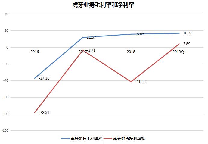 而观察虎牙2016年至2018年同样处于亏损状态,亏损金额分别为6.26亿元、8097万元和19.38亿元。尽管从近3个季度来看虎牙实现连续盈利,但毛利率最高在2019年一季度也只有16.76%,净利率仅为3.89%。