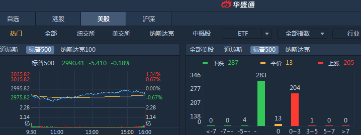 上周五,非农超预期打压降息预期,拖累美股三大股指收跌,标普收跌0.18%报2990.41点;道指收跌0.16%报26922.12点,纳指收跌0.10%报8161.79点。