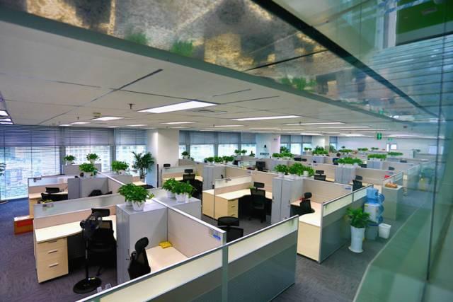 支付宝每位员工都配置了盆栽,放眼望去,整个办公室一片绿。