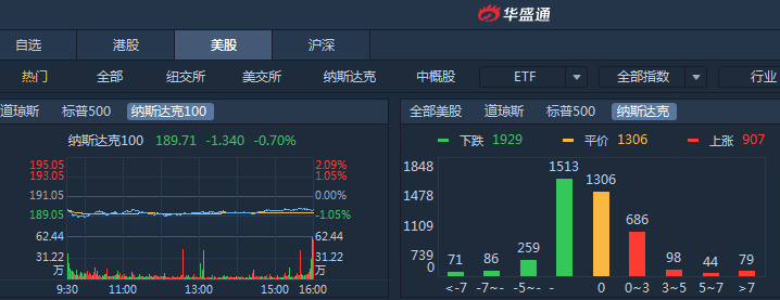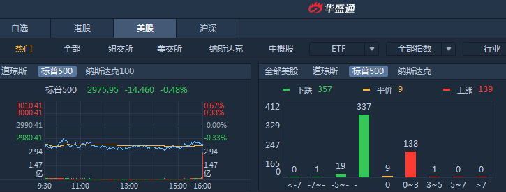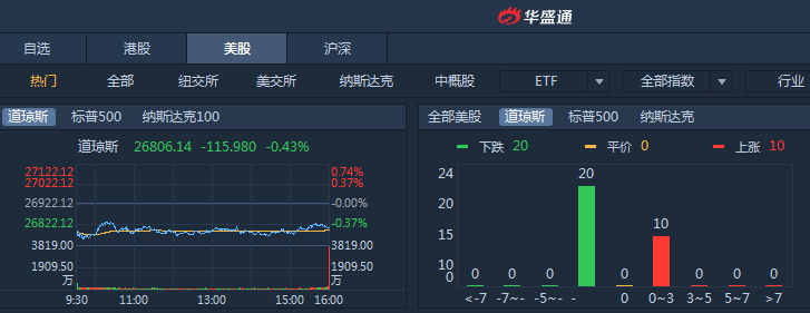 美联储降息预期降低,加之大摩看淡全球股票,周一美股全线收跌,道指收跌0.43%报26806.14点,纳指收跌0.78%报8098.38点,标普500收跌0.48%报2975.95点。