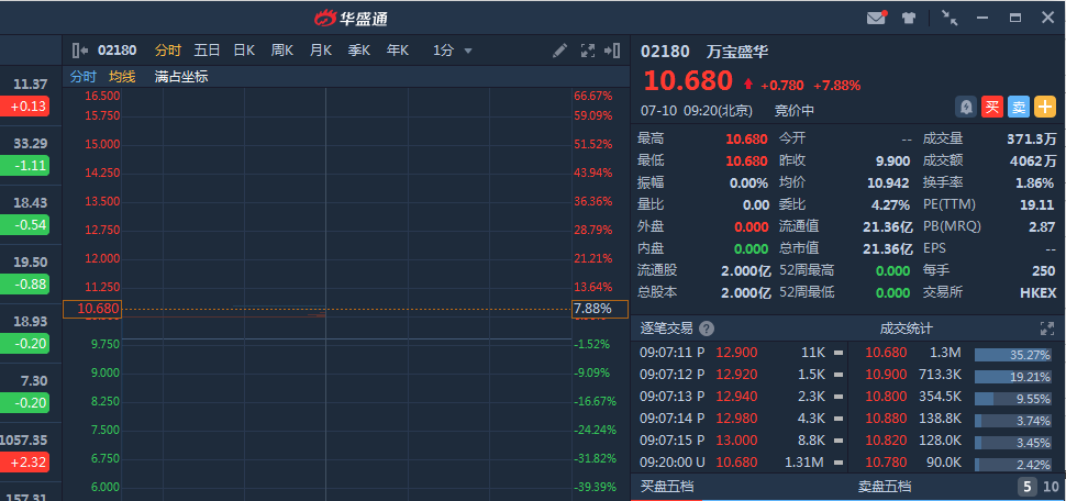 智通财经APP获悉,万宝盛华(02180)首日挂牌,截至9时20分,涨7.88%,报10.68价港元,成交额4062万港元,市值达21.36亿港元。