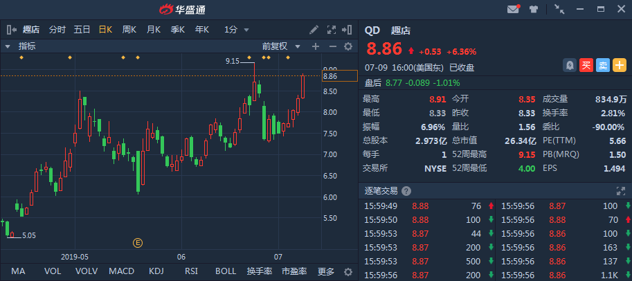 趣店日前发行的利率仅1%的可转债获得超额募集,投资者主要是看中可转债背后的看涨期权,认为趣店还有较大上行潜力。该看涨期权交易上限价格为每股12.92美元,较当前价格大约还有50%的溢价。
