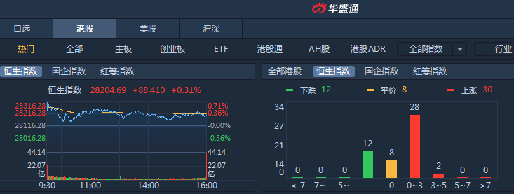 板块方面,物业管理股走高。永生生活服务(01995)发盈喜大幅冲高带动物业板块整体上扬,永升生活服务(01995)涨15.43%,新城悦(01755)涨8.38%,佳兆业物业(02168)、中海物业(02669)涨超7%;国际油价持续反弹,石油股集体回暖,中国油气控股(00702)涨15.7%,中海油田服务(02883)、昆仑能源(00135)涨超4%,中海油(00883)涨1.39%。