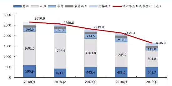 虽然瑞幸上市后尚未发布过财报,但从招股书来看,瑞幸的单店运营成本在不断降低。主要是人力成本的缩减,制作咖啡是一项比较简单的劳动,兼职工同样可以熟练掌握,瑞幸发展初期需要招聘一些全职员工作为培训师,而后随着兼职员工比例逐渐提高,单个门店人力成本会逐渐下降。