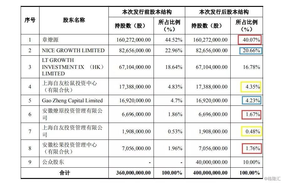 根据招股书,此次IPO最大受益者仍是“松鼠老爹”章燎源。IPO后,章燎源直接持股40.07%,通过安徽燎原投资、松果投资间接持股3.43%,合计控制43.5%且是有表决权的股份,掌控能力可见一斑。持股数17402万股,按照14.68元发行价计算,章燎源身价超25亿元,这创业时投入的100万元相比,其投资收益翻了2500倍!