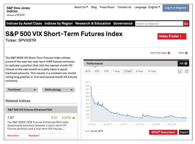 为了方便衡量这种固定期限的VIX期货持仓的收益情况,标普公司发布了很多VIX期货指数(S&P VIX Futures Indices),常见的有: