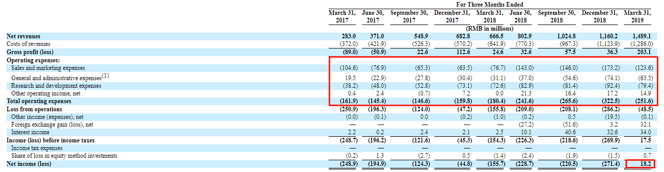 财务分析:2019第一季度迎来首次盈利