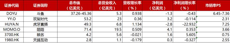 随着国内直播行业逐渐迈入成熟期,游戏直播市场存在一定的供给侧出清,目前的格局已经是斗鱼跟虎牙的两强较量。从市销率来看,斗鱼和虎牙十分接近。不少市场机构表示,与虎牙相比,斗鱼拥有更高的用户数量,且营收增长率,付费用户,月活等数据都表现更好。目前斗鱼已经成功扭亏为盈,未来的发展还是值得投资者关注的。