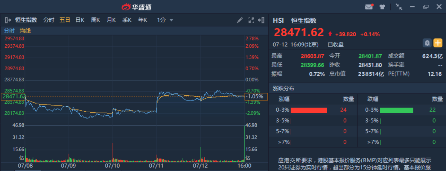 上周,恒生指数累跌303.21点,跌幅1.05%。震荡区间在28080. 73至20286.37之间,周累计成交额3402亿。