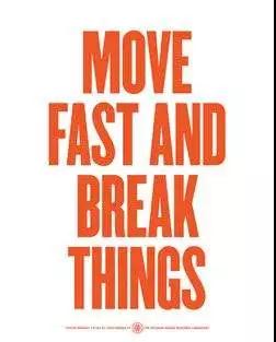 Facebook最有明的文化标语就是:“Move fast and break things”。意思就是说你如果有什么好的想法,就要快速行动做出东西,就算有时候把东西搞砸了也没关系。