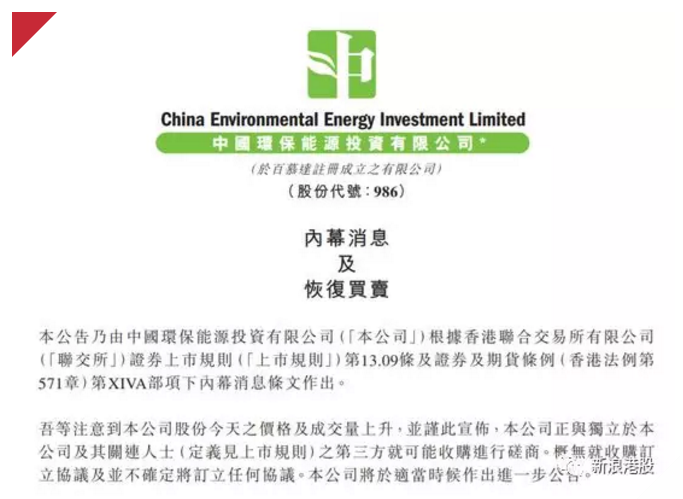 是卖壳吗?午间,中国环保能源(00986)发布公告,于2019年7月15日公司股份的价格及成交量上升,公司正与独立于公司及其关连人士的第三方就可能收购进行磋商。概无就收购订立协议及并不确定将订立任何协议。