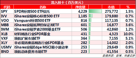 主要ETF变动情况: