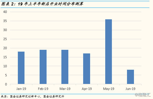 我们认为今年加速开店的情况会继续,结合18年开店的分布以及今年上半年的开店情况,我们预测19-21年新开店250家/123家/69家。