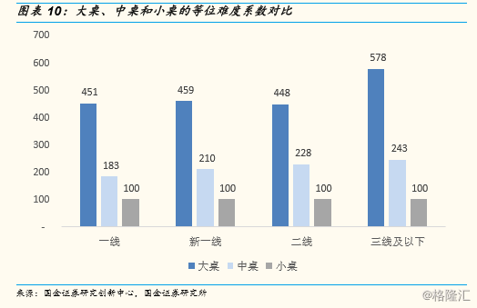 结合不同门店面积的统计数据,调整不同线城市门店桌位数的假设;同时我们认为未来新店还是以小店为主。