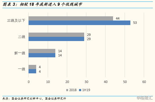 二、1H19客流量观察:一线城市门店分化,低线城市红利尚在