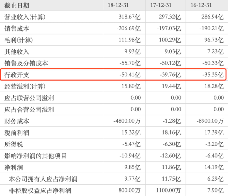 从损益表的数据来看,在毛利率大致维持不变的情形下,不断增加的行政开支拖累了最终的净利润绝对额,公司三年间的行政开支累计增长超40%,远超公司营收增速。对于2018年激增的行政开支,年报的解释是员工补偿及安置费用、拨备及因产能优化而减值等多重因素共同导致。其中,4.83亿元的员工补偿及安置费用源于公司关闭啤酒厂,该项费用为一次性费用,不具可持续性。