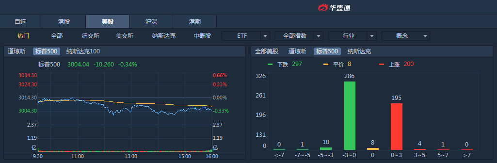周二,美股小幅收跌,三大股指脱离纪录高位。道指跌0.09%,报27335.63点;标普500指数跌0.34%,报3004.04点;纳指跌0.43%,报8222.80点。