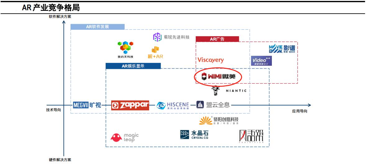 谈到AR现实应用,那就必须提一提可爱的皮卡丘AR游戏了。Pokémon Go自 2016年由 Niantic推出之后,以其超高的人气引起了市场对 AR 的广泛关注。Niantic 2015年从Alphabet独立了出来;2019年1月,在C轮融资中筹集到了2.45亿美元,其估值达到40亿美元。与此同时,其他一些AR公司正在探索新的商业模式。目前来看,这些公司可以分为三类:1)应用软件解决方案提供商,如影谱科技和创意引睛,提供基于AR的广告服务;2)集成硬件的软件开发商,如Zappar和亮风台,致力于开发应用程序和AR软件工具;3)系统集成服务提供商,如风语筑,在为客户策划的营销活动中使用AR技术。